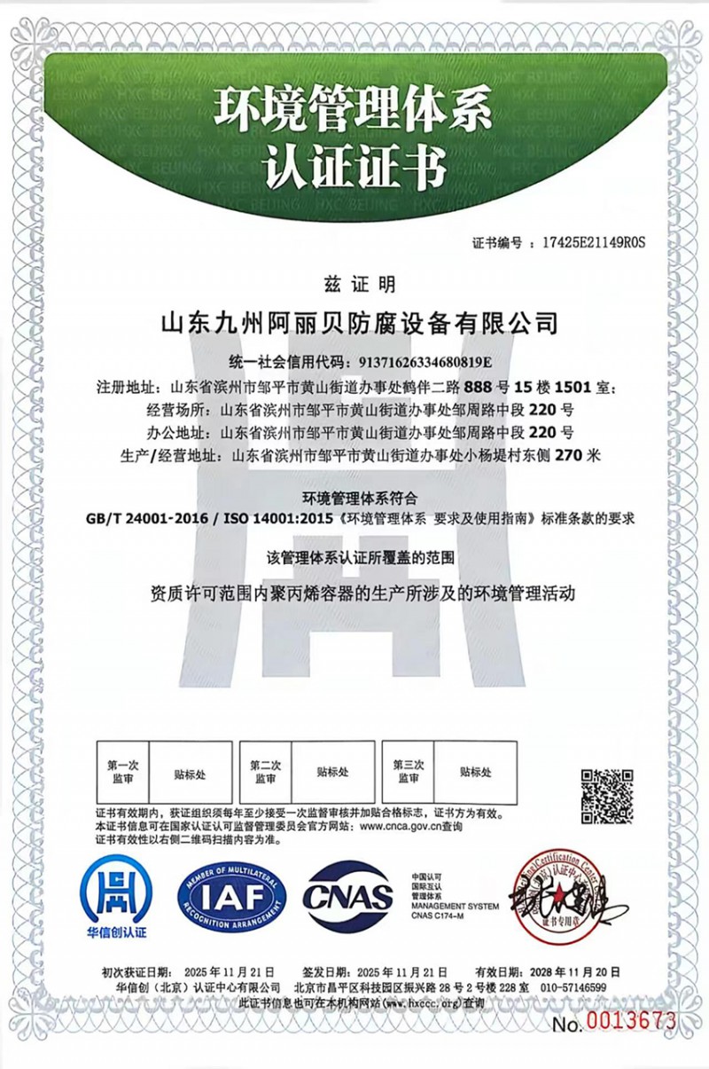 環(huán)境管理體系認證證書